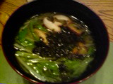 味噌汁はミョウガ、しいたけ、ミツバなどの具が沢山入っていて、