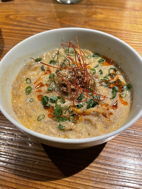 最初、お盆に鶏のたたき、漬物、大根サラダが置かれテンションが上がります。厳選された鳥の各部位は一品一品の焼き加減が絶妙。担々麺は山椒がきいていて〆にぴったり。