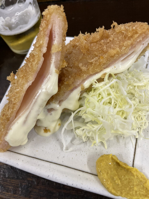 昼間から呑むビールは5割増しの美味さ。え、マグロぶつが売り切れ?まだ2時なのに。口は既にマグロを頬張る体勢になっていたのに残念。ならばチーズが溢れるハムカツを。揚げたてのハムカツにソースをドバッとカラシもたっぷり付けてパクッと。ビールが、さらに5割増しの美味さ、グビっと。
