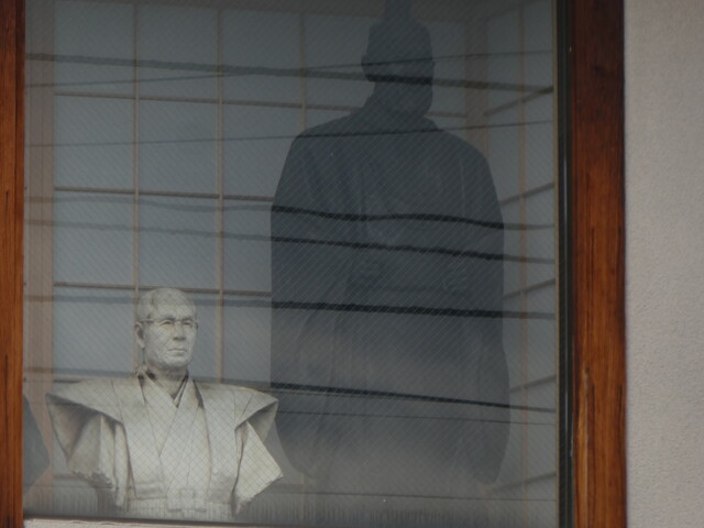 向いのお店の2Fにある謎の胸像。お店が休みで詳細聞けず