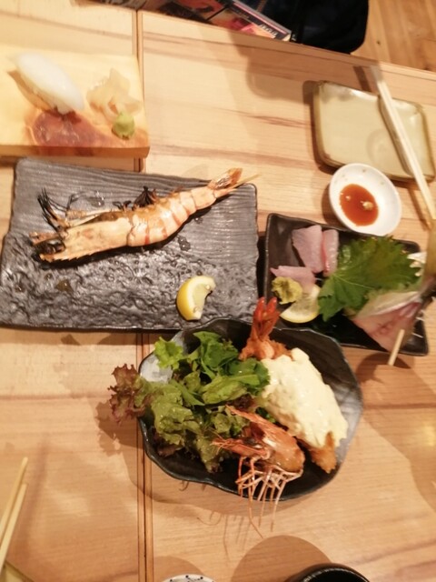 鯵を釣ろうとがんばりましたが、結局釣れずに、最終に、網ですくって、一番大きな鯵にしました。それをすぐにお造りしましたが、新鮮で美味しかったです。大海老のフライや、季節の天ぷらなど、すごく美味しくて、エンタメも楽しめて、家族連れにはピッタリだと思います。