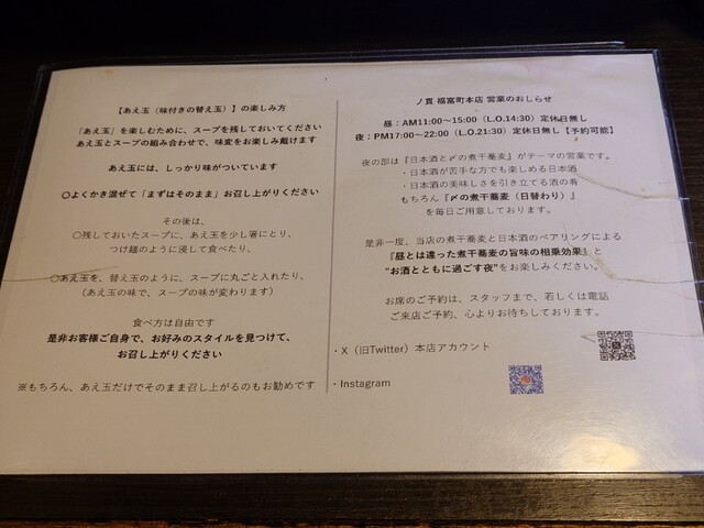 ✨️唯一無二な独創性があり癖になる濃厚な旨味があるラーメンで、「あえ玉」と言うオリジナルの替玉みたいな味付け麺でバリエーションが豊富になるのも面白いシステムです。毎日日替わりでメイン以外は変わるのも顧客を飽きさせない仕組みでハマります♪