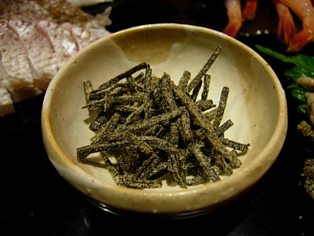 鯛に塩昆布を乗せて頂きます