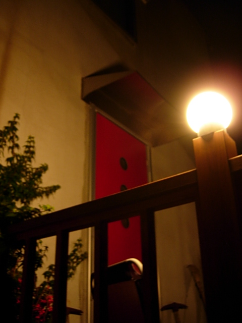 ウッドデッキに登って赤いドアにたどり着きます。