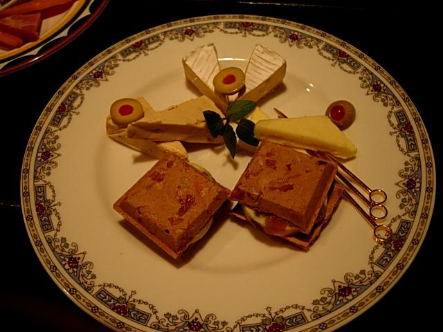 チーズの盛り合せにはフルーツが入ったチーズをクラッカー風のものでサンドしたものが登場。