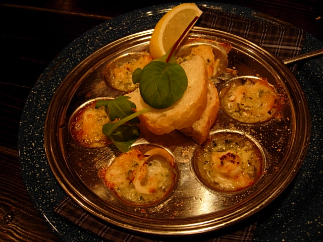 あっちあちのプレートに載ってツブのエスカルゴ風も登場。