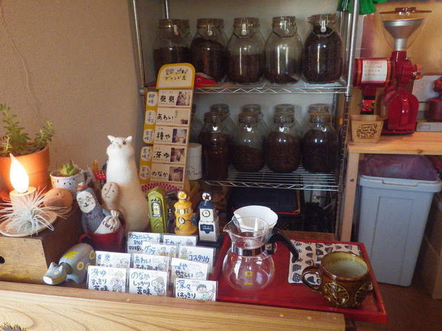 おうちの入り口でコーヒー豆を販売しておりますよ。