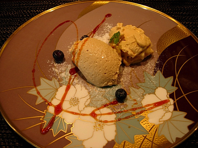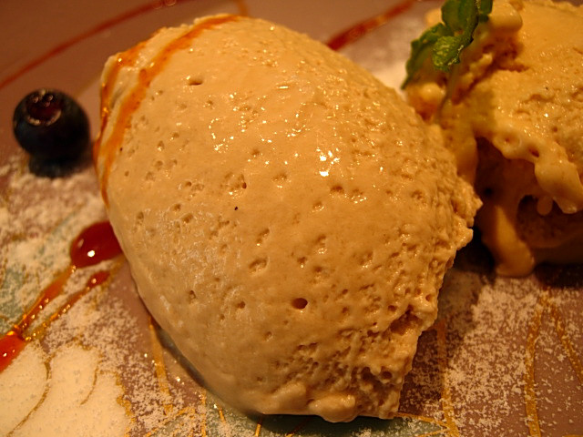 抹茶のマカロンやバタークッキーと自家製のアイスクリームで