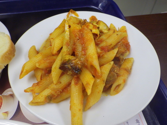 ②北海道産三種蟹とケッパーのトマト煮ソース、ペンネ(500円)