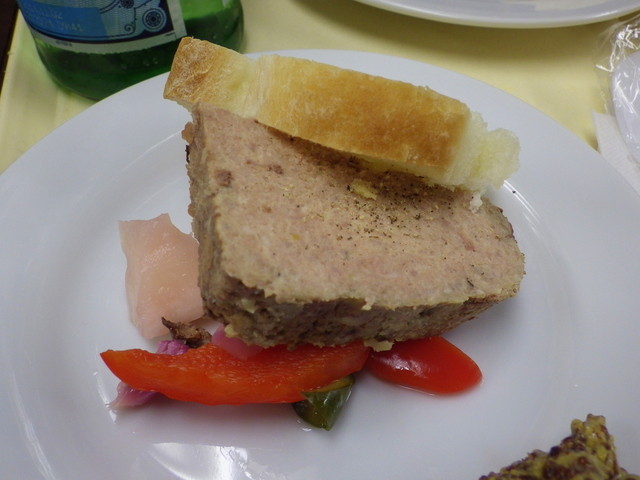 ④道産豚と鶏の白レバーの田舎風テリーヌと近郊野菜のピクルス パン添え(500円)