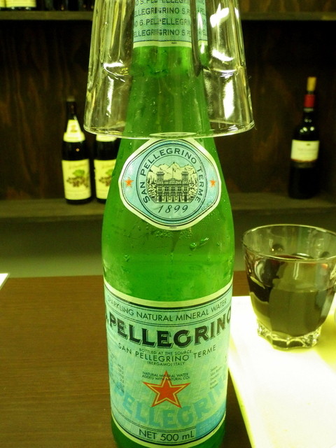 右・赤ワイン/サン・ロレンツォロッソ・コーネ'09(500円) 左・サンペレグリノ瓶(500円)