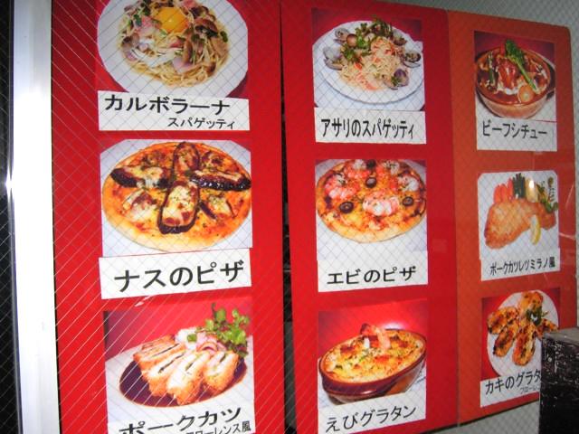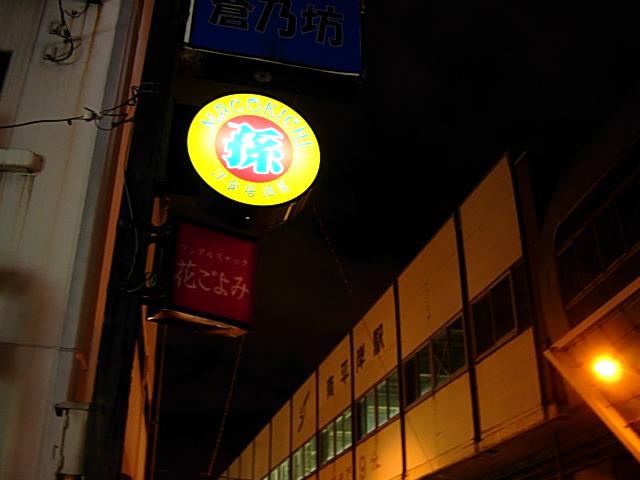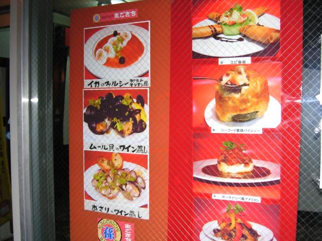 ビルの大きなガラス面には孫吉さんのメニュー写真がいっぱいに張られています。