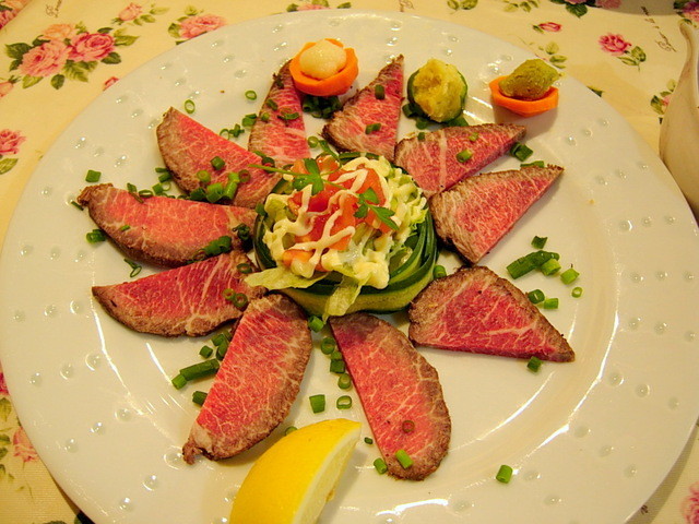 やわらかい牛肉で口に入れると脂が程よく溶けてこれはおいしい。