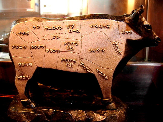 あとカウンター上に牛肉の部位の模型があったので(ブロンズ製でかなりな重さ)これも後学のために撮影。