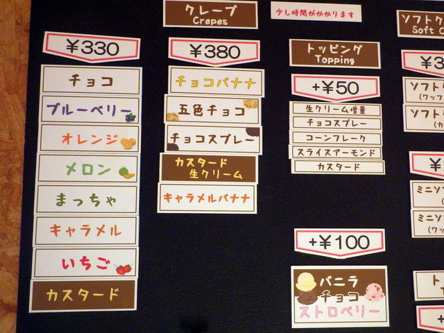 メニューはクレープをメインにカキ氷やソフトクリーム、ドリンク類が用意されています。