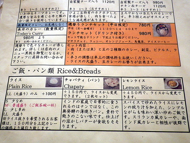 ライスの大盛り、豆カレーのお替りが出来るようです。