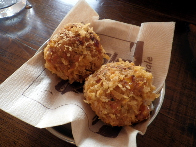 鶏ひき肉を丸くしてパン粉をまぶし揚げてます。