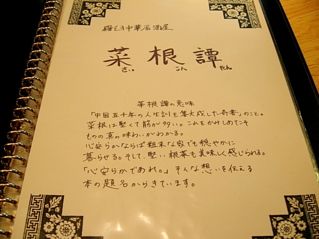 店名の菜根譚も感銘を受けました。