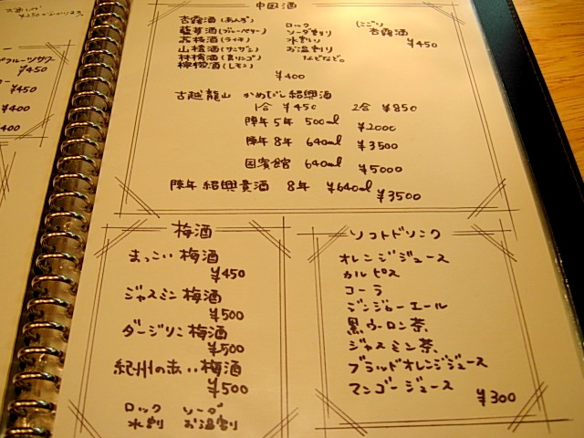 紹興酒とウーロン茶をお願いしたあと、
