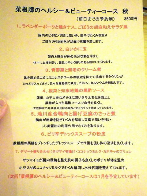 菜根譚のヘルシー&ビューティーコース(2500円)