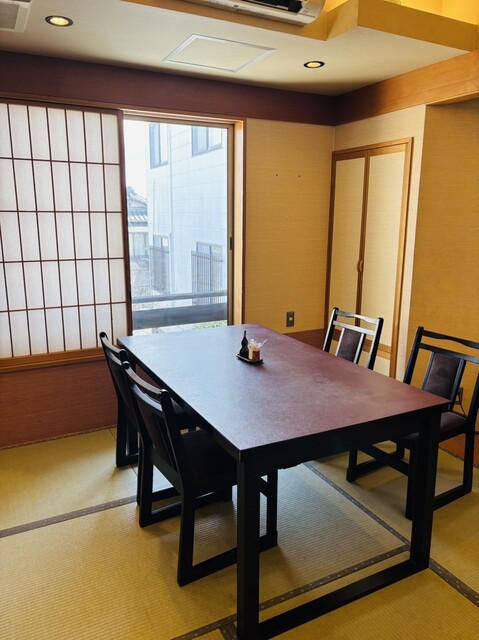 明るく眺めの良い広い和室にテーブルと椅子が並べられていました。