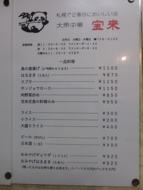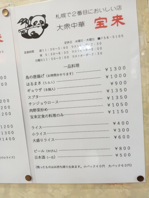 気を取り直し(なんかしていない・・・TT)、北24条の名物中華「宝来」へ車を走らせた。