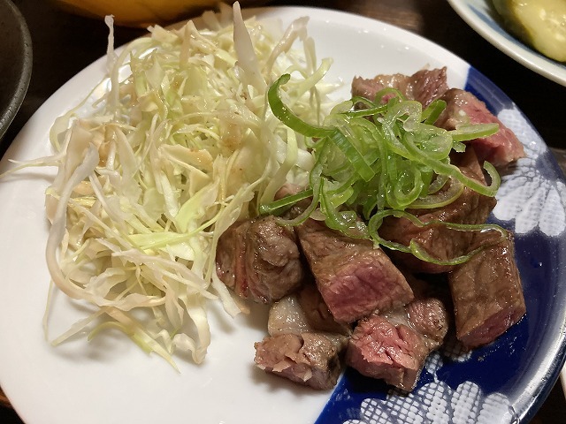 二品目は名物の300円の“牛ロース焼き”です。