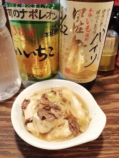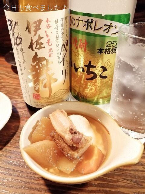 一人での訪店ですが、乾杯は焼酎ボトル“芋”と“麦”です。
