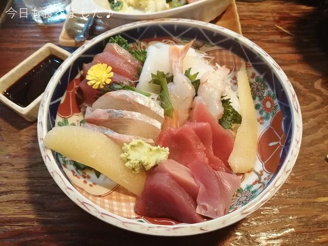 かつおたたき6切れ、マグロ、イカ、鯛など盛り合わせで500円は神コスパ!!!