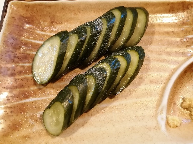 一品目はいつもの200円メニューの“きゅうりのぬか漬け”です。