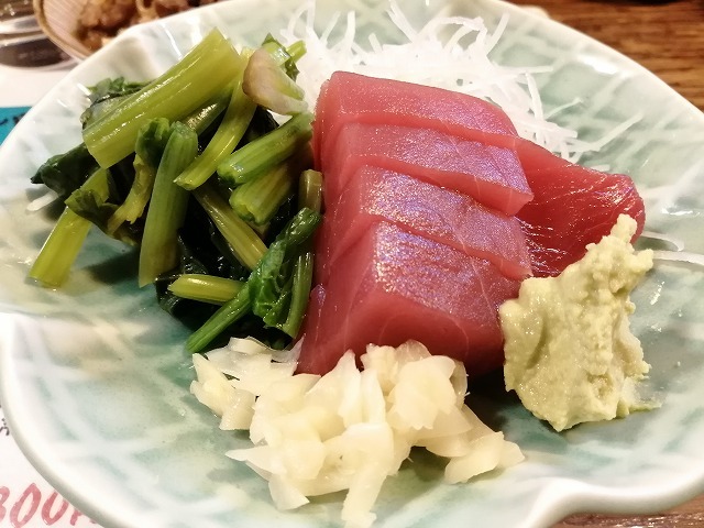 先ずは居酒屋の定番ということでお刺身をいただきました。