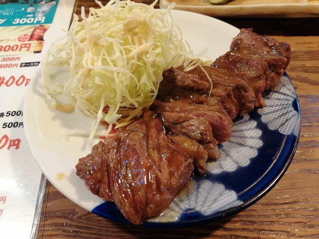 最後にいただいてしまったのが、やはり200円メニューの“牛ロース焼き”です。