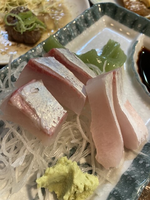 『貝柱のお刺身』は500円、名物と云っても過言ではない『カンパチのお刺身』は400円で