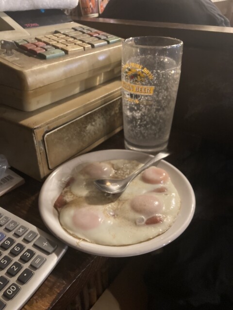 さらに最近ハマっている『ハムエッグ(300円)』はたくさんのハムやウインナーと玉子4つ使ってるのでボリューム満点。
