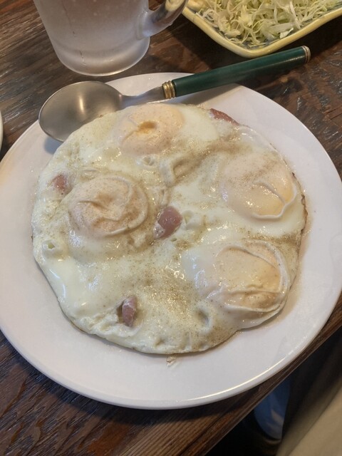 さらに三品めもいつもの『ハムエッグ』で400円は神コスパ。なんと玉子四つとたっぶりのハムを使ってるんです。