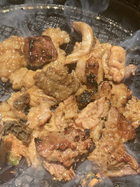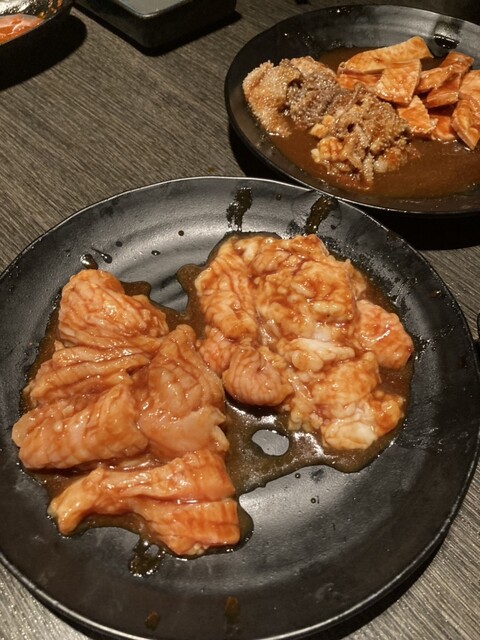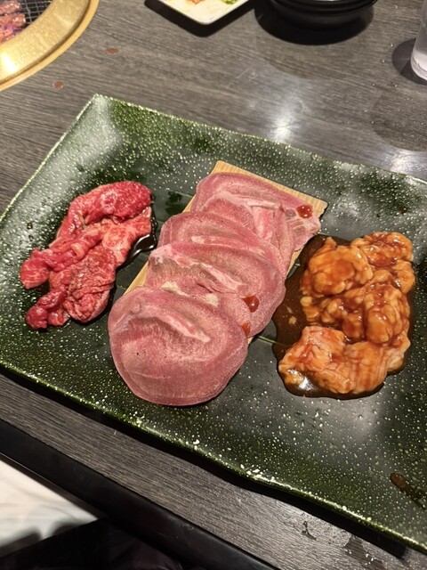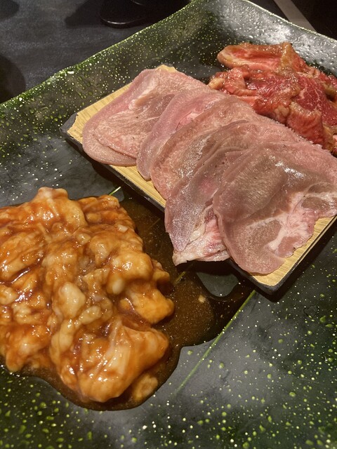 ヤングカルビ、豚タン、テッチャンの3点盛り300グラムで中々ボリーム満点。