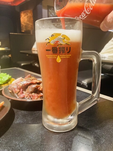 2杯目以降はマイブームの生ビール(320円)とトマトジュース(120円)で割ります。