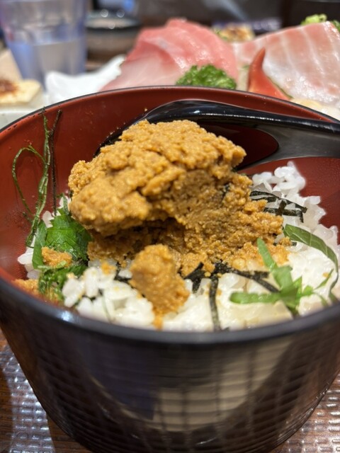 自家製うにみそのボリュームがお店の写真よりも豪快で、いい意味での写真詐欺。大きなスプーンですくったそのままご飯に盛り付けられているのか厚みもすごい。写真で伝わりますか?これだけでご飯をモリモリ食べられますし、お刺身も相変わらず美味しかったです。