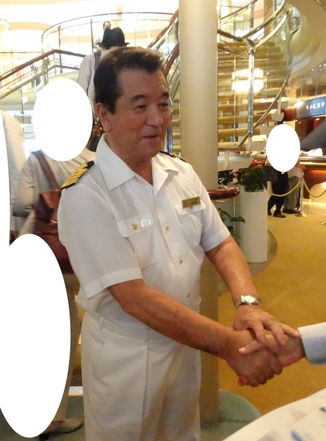 乗船は名誉船長の歓迎の握手から始まる~♬