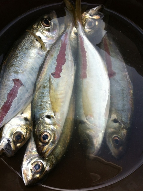 今回はいわしはほとんど周っておらず、小さいのが5匹位、後はでっかいボラ??(美味しくないらしいから逃がしてあげました)