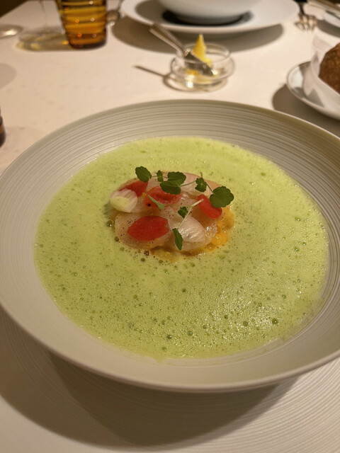 日本のオンシーズンの食材とフランスからの食材の組み合わせが東京でフレンチを食べる醍醐味と思う。旬に偏った料理は日本料理、鮨に多く、それはとても美味しいのだが全体のダイナミズム、変化に多少欠け、店それぞれの個性を感じにくくしている。ロオジエの料理は毎年、毎シーズン変わらないものと今しかいただけない新しさに説得力がある。