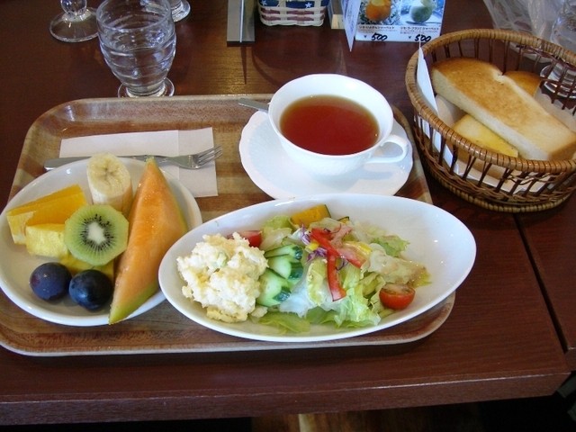 朝から、野菜がたっぷり、フルーツもたっぷり、+パンと、ボリューム満点ですが、とってもヘルシーです。