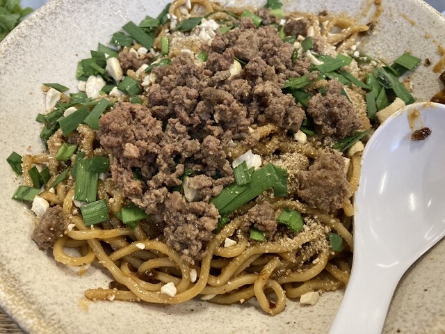 マゼソバ汁無担々麺、パクチースイギョーザ、オーガニックジンジャーエールをいただきました。