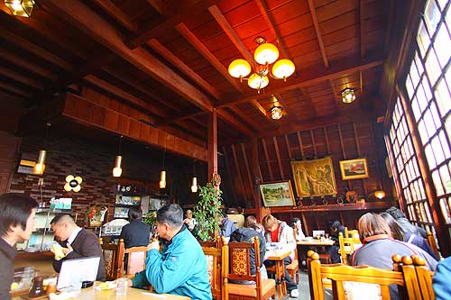 店に入ると ロッジで喫茶をやってる感じの店内が広がる 昭和も40年代あたりまでのイメージ。