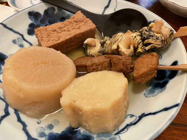 惣菜の盛り合わせ(おばんざい)とおでんを食べたら最高ですー。