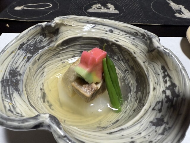 中でも今が旬という自家製の蒟蒻、2番目に出てきた炊き立てで良い塩加減のおこわ、桜エビのかき揚げ、どこまでも柔らかい宮崎牛の肉が美味しい。