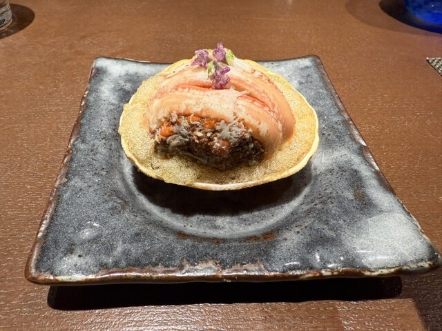 カラスミサンドと白子が美味しかった前菜の美しい小皿が並ぶ品から始まり、プリプリの牡蠣の揚げ物、兵庫からの綺麗に盛り付けられたカニ、カワハギの肝バサミが美味しいお刺身、鯛の焼き物、鯛めし、デザート…どれも見て綺麗、食べて美味しい一品で大当たりでした。
