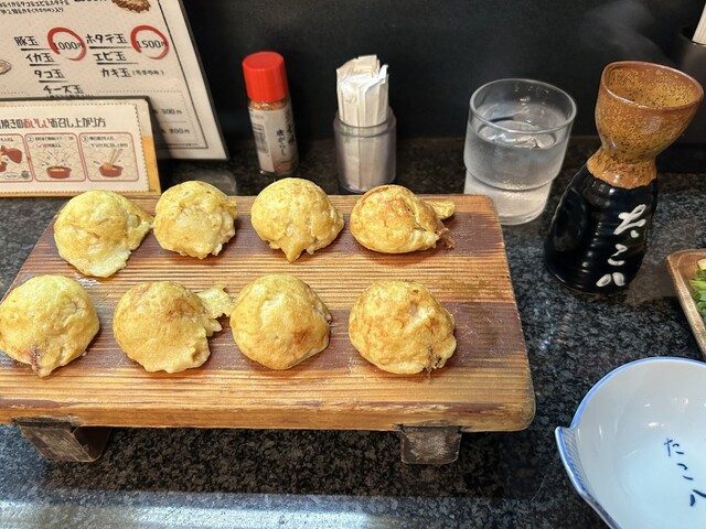 この店は30年くらい前からあり、僕は高校生の時から行ってます。 先日、家内と松本へ旅行に行っていたのですが、大阪に着き帰りにチョット大阪へ帰ってきた実感を味わいたく、阿倍野センタービルB2Fの”たこ八”に行きました。ココの明石焼きは、本場明石の玉子焼きに勝るとも劣らずの本格派です。注文するとたいていは直ぐに運ばれてきて、アツアツを食べられます。注文と同時に出汁と薬味(ネギ、ショウガ、ミツバ)が運ばれてくるのですが、好きなだけ入れられて大満足です。 僕はいつも明かし焼きは出汁につけて半分に割り、たっぷりしみこませたあと食べるのです。この食べ方だと出汁がたくさんいるのですが、この店は1合徳利に1人前づつくるので、明石焼きに2杯使い残りは、出汁だけ飲み干すくらい美味しい出汁です。 あと隣接するアポロビルで映画を見ると、映画の半券でソフトドリンクをサービスしてくれることもあり良い店です。 他にたこ焼きも美味しく、昼ごはん代わりに、お好み焼きや焼きそばも食べれる万能型ですが、僕は何が何でも明かし焼きは必ず食べます。 あとビールを飲みながら、その他のものを食べることもありますが、メインはくどいようですが、明石焼きです。絶対お勧めです。