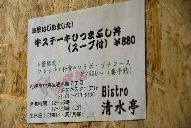 狸小路7丁目のTANUKISQUARE1Fのビストロ清水亭。
