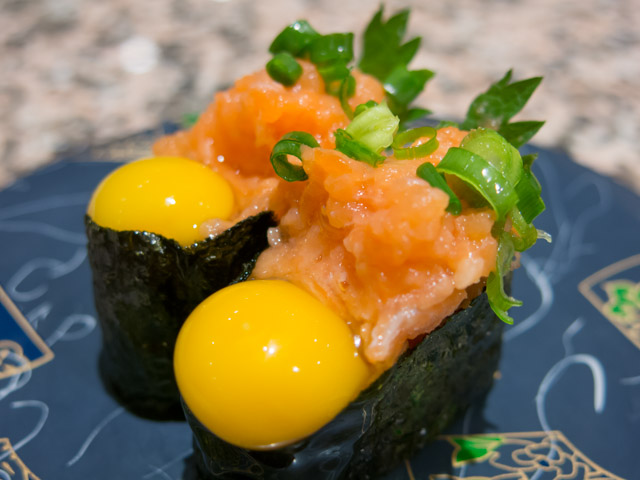 北海道の回転寿司店の超人気店、根室花まるが東京初進出。JRタワーステラプレイス店では70分以上の待ちも当たり前だが、こちらは同じような待ち人数でも約半分程度の待ち時間。「ビジネス街ということもあるからでしょうか」とお店の方は仰っていたけど、訪問日はGWかつエレベーターとエスカレーターへ進むにも長蛇の列と人数規制中。単純に東京および首都圏住みの人達の飲食にかける時間が短いのかなと思う。ちなみに2列目の最後部から並び入店まで計測したところぴったり30分。ビジネス客や搭乗時間に追われる旅行客の多い新千歳空港店で並んだときは10人程の待ちで30分ちかく待ったことを考えるとやはり地域性によるのか。店内はカウンター、テーブル、そして回転レーンの無い窓側のテーブル。黒板とレーン上におすすめ品の掲示あり。北海道から本州へ出店した回転寿司屋さんのいくつかのように味や鮮度の劣化は無く道内で食べるのと遜色なく美味しく、値段もほぼ変わらず提供してくれるのがうれしい。握りはともかくとして、ネタの豊富さは良い。ランチタイムに限れば京橋すし処目羅と悩むがそれ以外の時間帯であれば迷わずこちらへ来るだろう。手書きした注文票をシャリを扱う職人さんが素手で受け取るのがやや気になるところ。